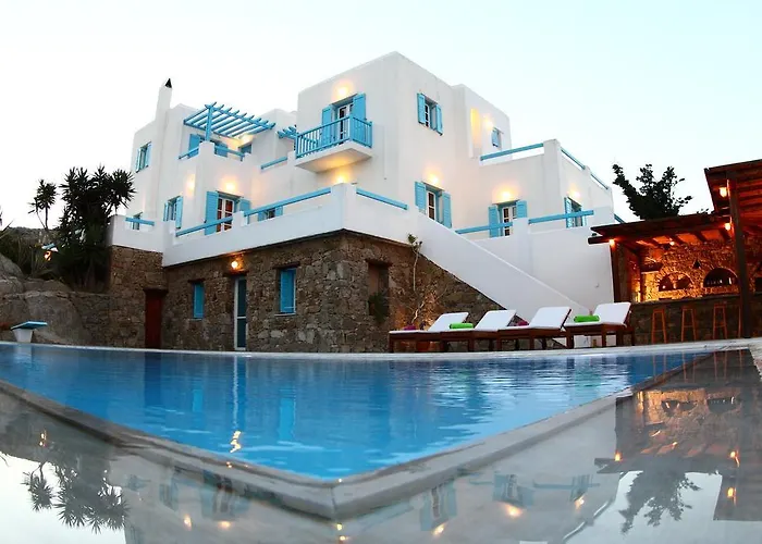 Die 1-Zimmer- Galini Villa Agrari liegt ungefähr 4 Kilometer vom Archäologischen Museum von Mykonos entfernt und verfügt über eine Terrasse mit Blick aufs Meer. Die Villa in Agrari bietet einen Swimmingpool und liegt etwa 10 Fahrminuten vom Lena-Museum entfernt.